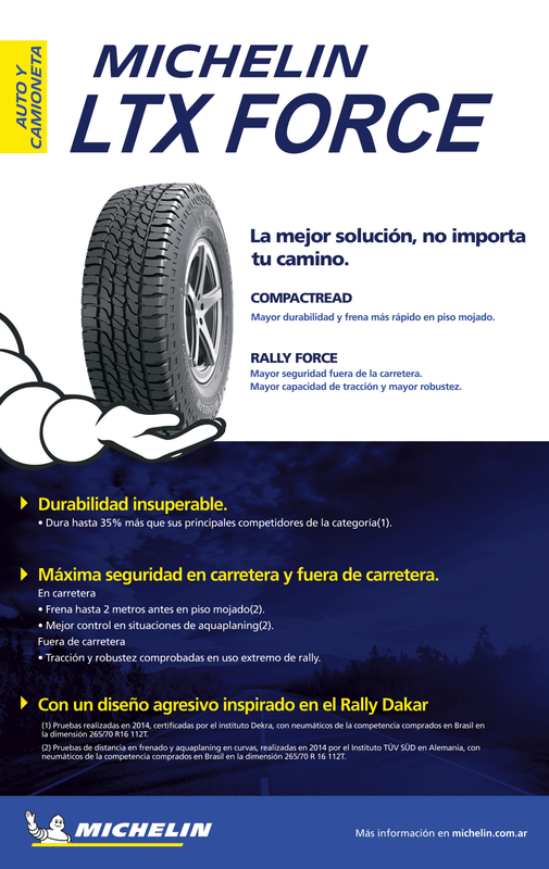 MICHELIN LTX Force fue desarrollado a partir de las experiencias de Michelin en el WRC (World Rally Championship). Además, el neumático fue testeado en condiciones extremas de minería para garantizar la tracción y robustez necesarias en off road.